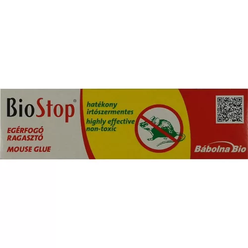 BioStop egérfogó ragasztó egerek befogására. A ragasztó nem mérgező, nem gyúlékony, színtelen, szagtalan készítmény. Minősége víz, nedvesség hatására nem romlik. Szükség esetén benzinnel eltávolítható. Csótány és hangya ellen is alkalmazható. Irtószermentes ragasztó!