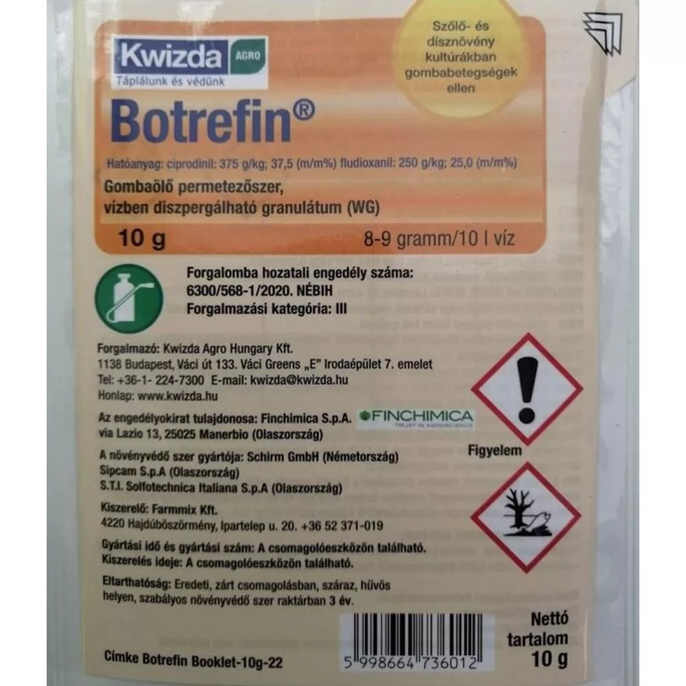 • A Botrefin egy igazi nagyágyú. Kettő felszívódó hatóanyagot tartalmazó gombaölő szer, amely kimagasló hatékonyságot mutat.