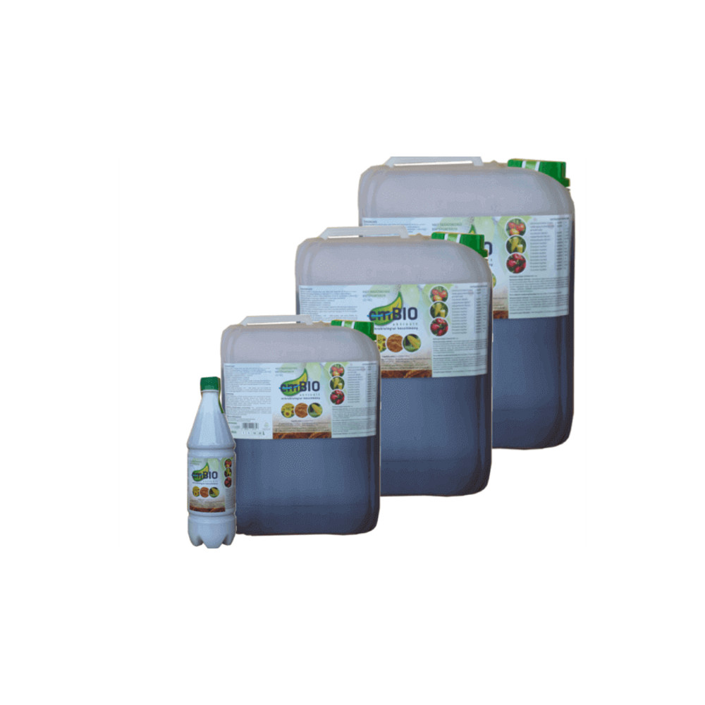 300 liter vízhez keverjen 3-5 liter emBIO-t és permetezze a növény lombozatára. Mindig vegye figyelembe a kezelni kívánt növényállomány lombfelületének nagyságát és ehhez igazítsa az emBIO mennyiségét.