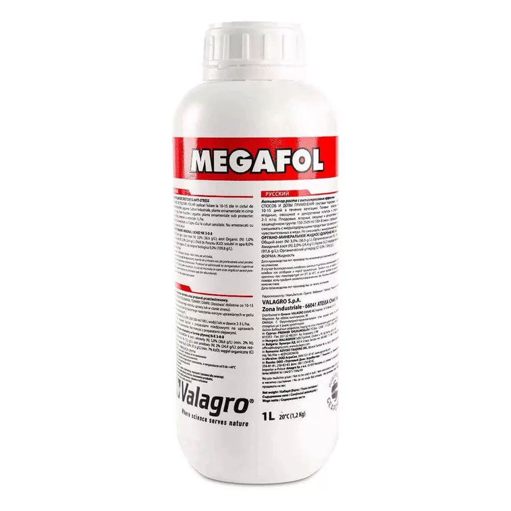 A Megafolban vitaminok, aminosavak, fehérjék, betainok és növekedési faktorok egész sora található meg. Rendszeres használata fokozza a kiegyenlített vegetatív növekedést és a termőképességet. Stresszhatás esetén (pl. fagy, gyökérfulladás, gyomirtás, jégverés) alkalmazva, a benne lévő betainok és aminosavak szinergista hatásának köszönhetően a növény gyorsan és látványosan kiheveri a stresszhatás káros következményeit, és ismét fejlődésnek indul. Alkalmazásával fokozható a lombtrágyák hasznosulása is.