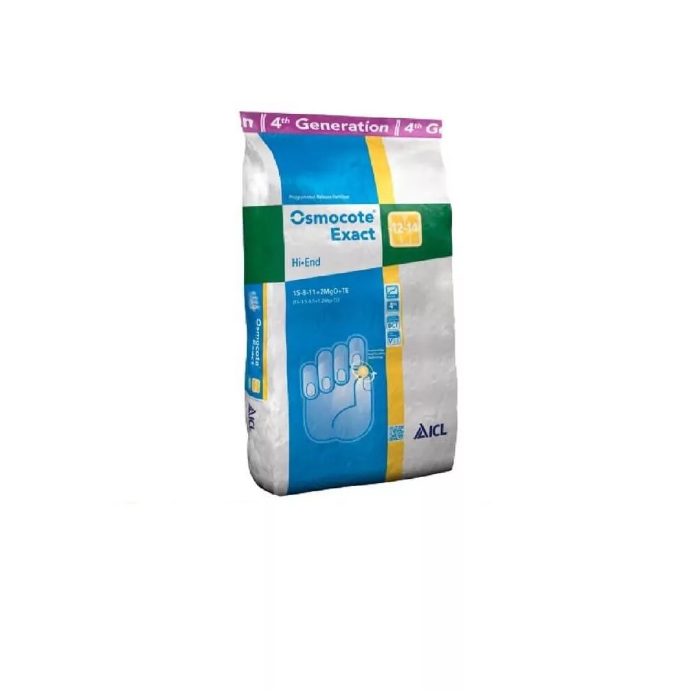 Az Osmocote Exact Hi.End 12 – 14 Hónapos “programozott feltáródású” burkolt műtrágya, az Osmocote 4. generációs, DCT (kettős burkolási technológiájú – Dual Coating Technology) műtrágyáinak tagja. A hatástartam és feltáródási ütem előre meghatározott.